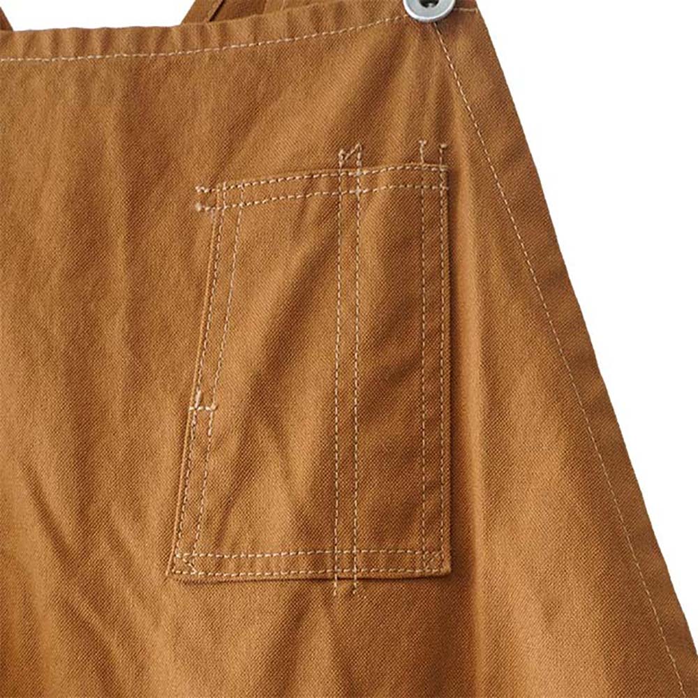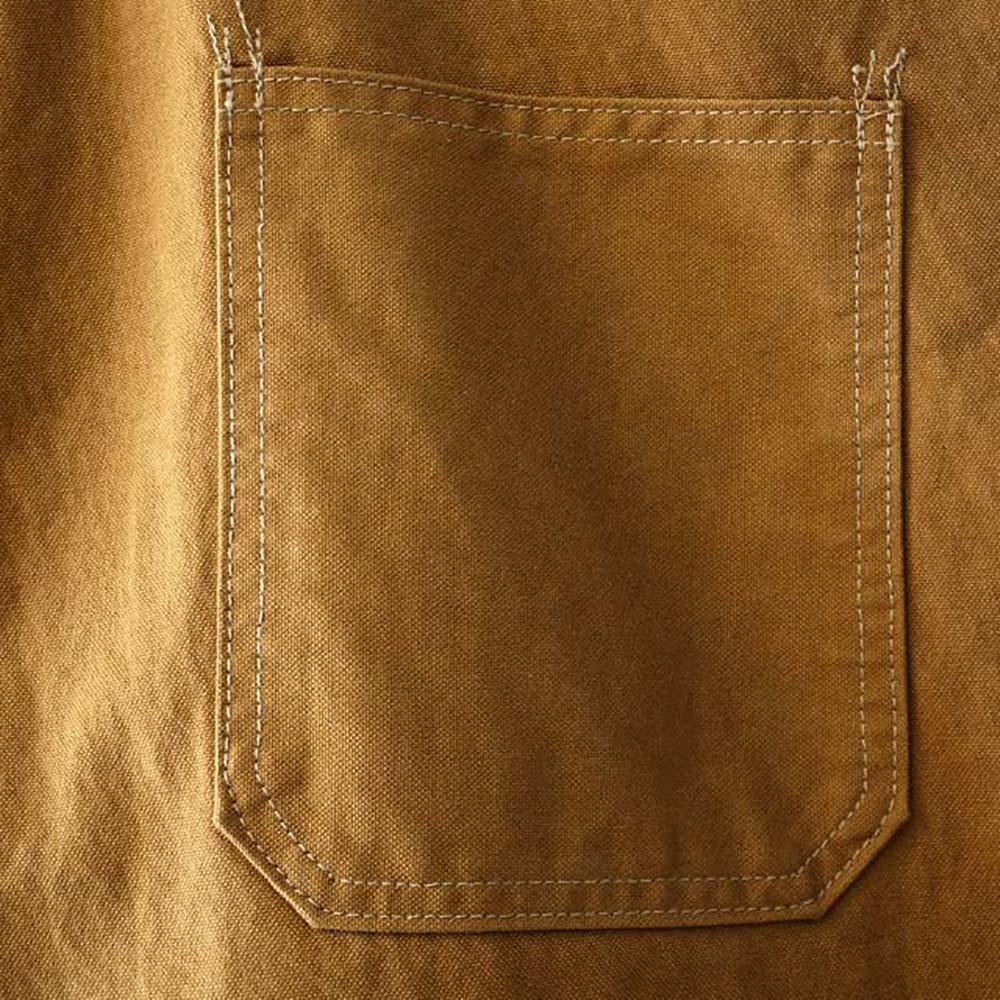 素材はブラウンダック。ハリのある軽やかな質感は春夏に最適です。各所ポケット、ウエストベルト裏等には生成の別素材を使用しています。