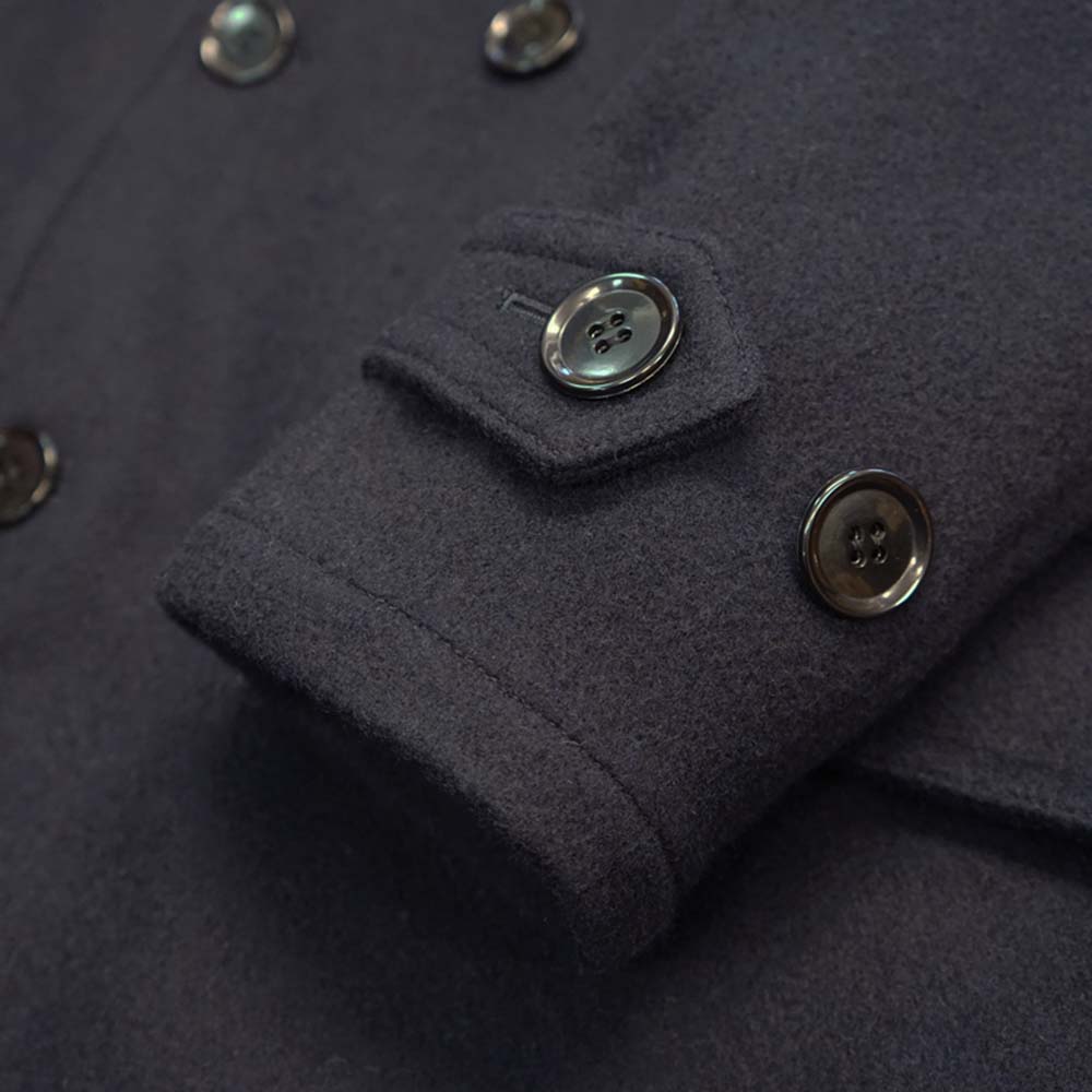 素材にはしっかり目の詰まった上質なネイビーメルトンを使用。真冬の着用に耐えうる防寒性を保ちます。