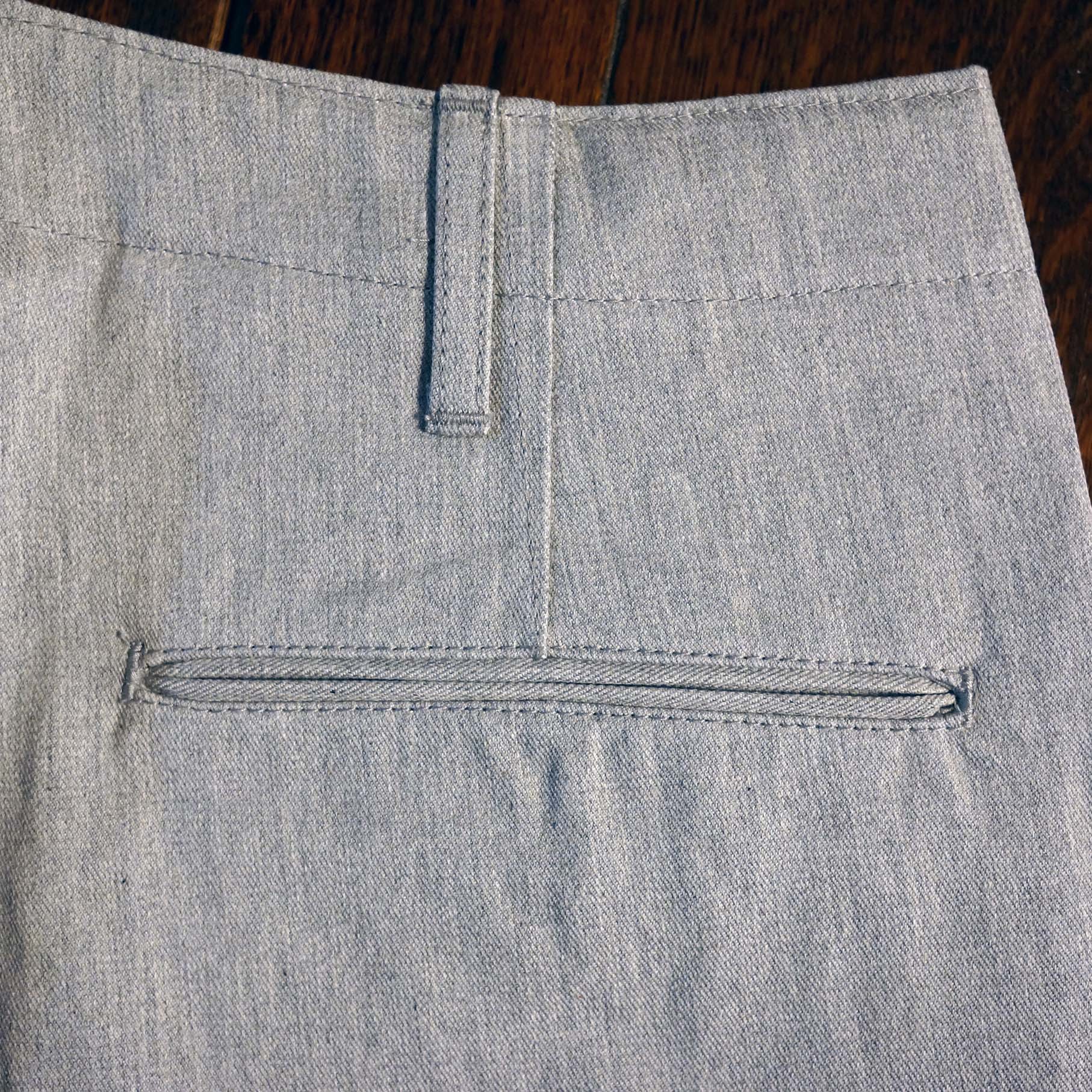 縦糸はトップグレー、横糸はオフホワイトのツイル生地、表面はグレー、裏面はオフホワイトになります。