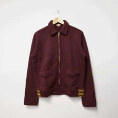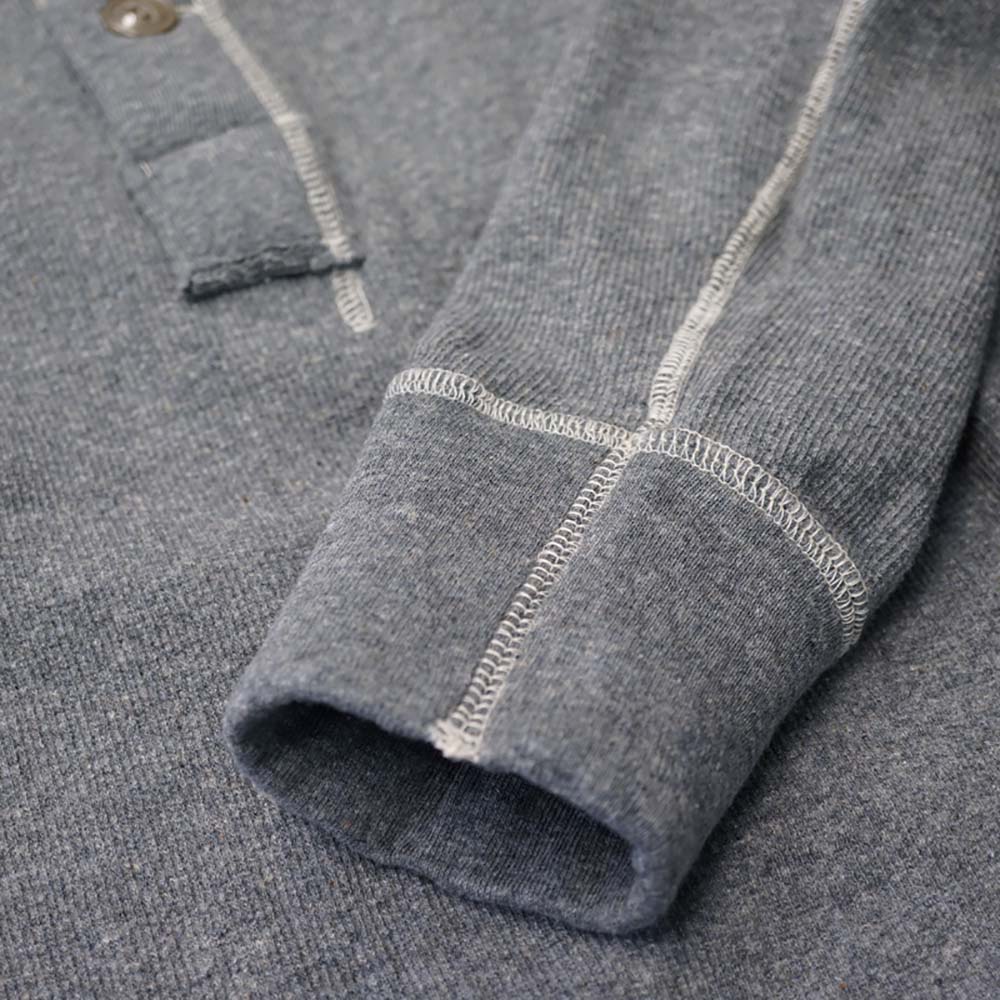 エリ、前立て、袖口のリブはボディよりもひとランク薄手で目の細かいフライスを使用していますが、リブの中にもう1枚フライスを挟み込むことで、ボディに負けないボリューム感を出しています。
