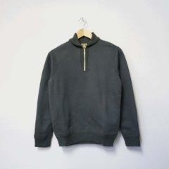 クラシックな編み出しリブ使いが特徴のハーフジップスウェットシャツです。
