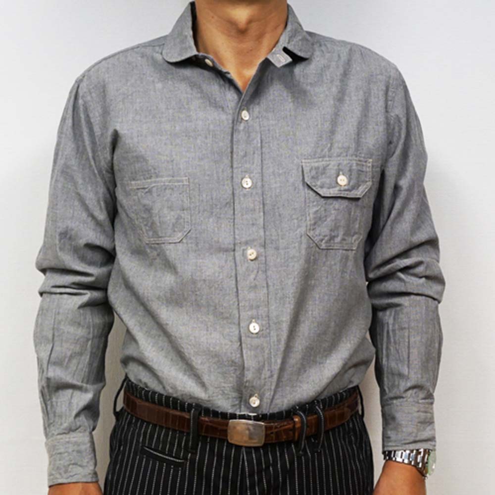 細番手の綿糸(60番手)を用い本縫い仕様で縫い上げたクラシックスタイルのワークシャツです。