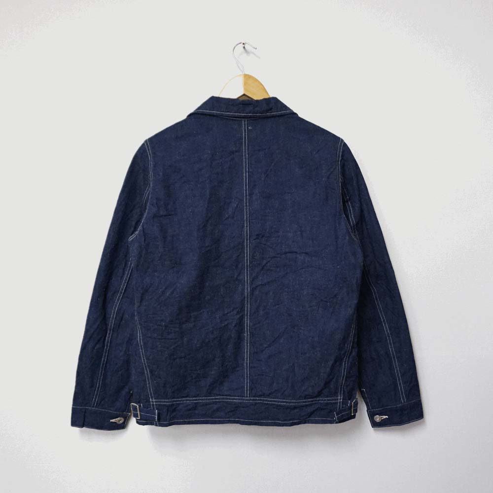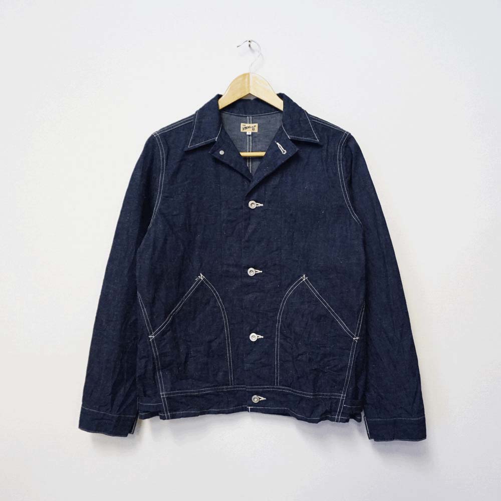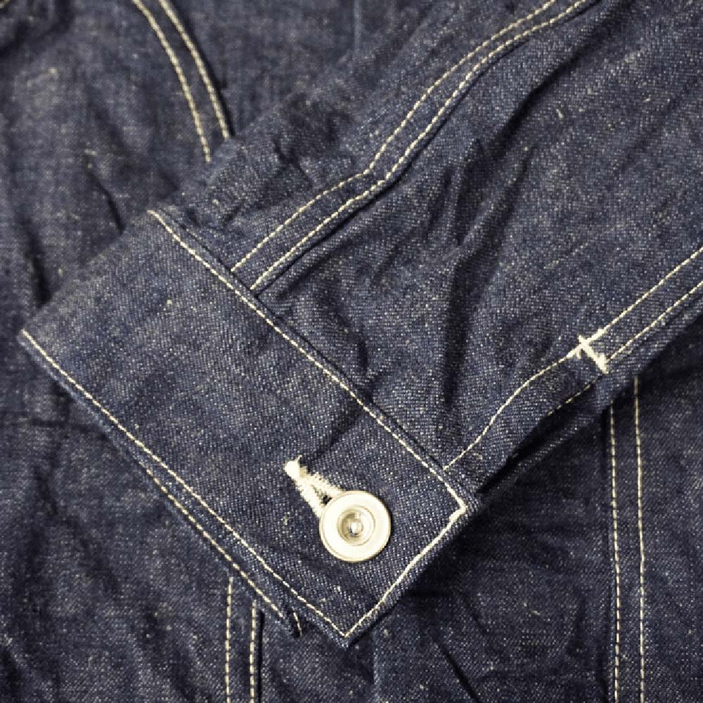 1930年代のアメリカ製ワークジャケットを参考に、ヴィンテージの持つ空気感を保ちつつ着丈、身幅、袖幅、衿型等各処のサイズ設定を見直し、すっきりとしたタイトシルエットに仕上げました。