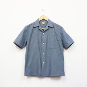 ネップ感のあるインディゴシャンブレーを使用したボックスシルエットの開襟シャツです。